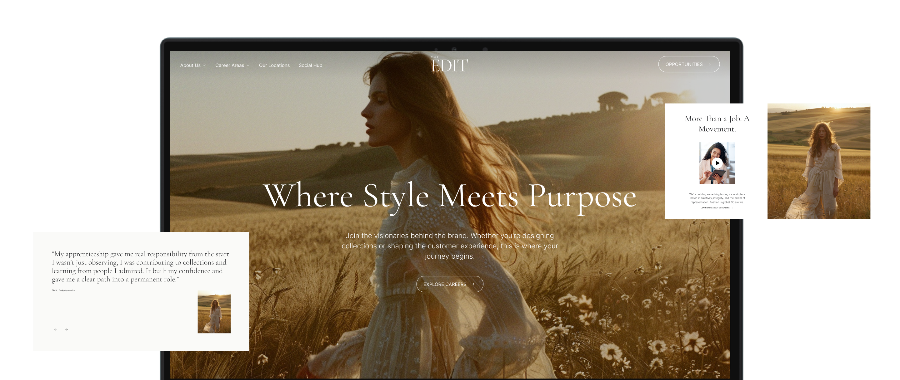 A refined and image-led careers experience for a global fashion brand. The Edit brings together editorial design, storytelling, and effortless navigation to create a careers site that feels like an extension of the brand itself - modern, inclusive, and deeply human. Designed to inspire connection and showcase culture through striking imagery, clean layouts, and aspirational tone.