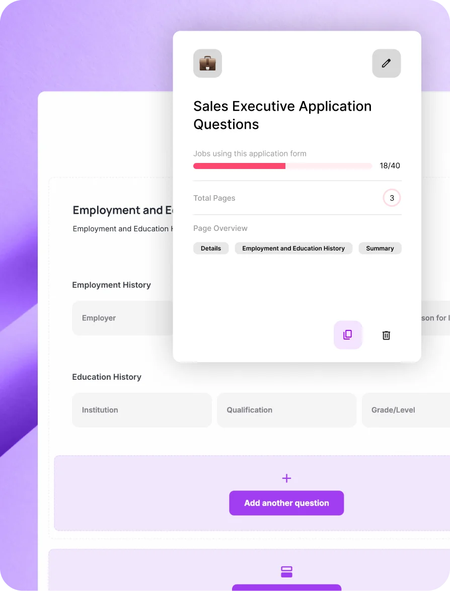 Create tailored application forms for every role - drag and drop, no technical knowledge needed. Ask what's relevant, filter out what isn't.