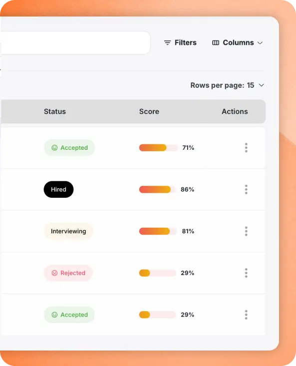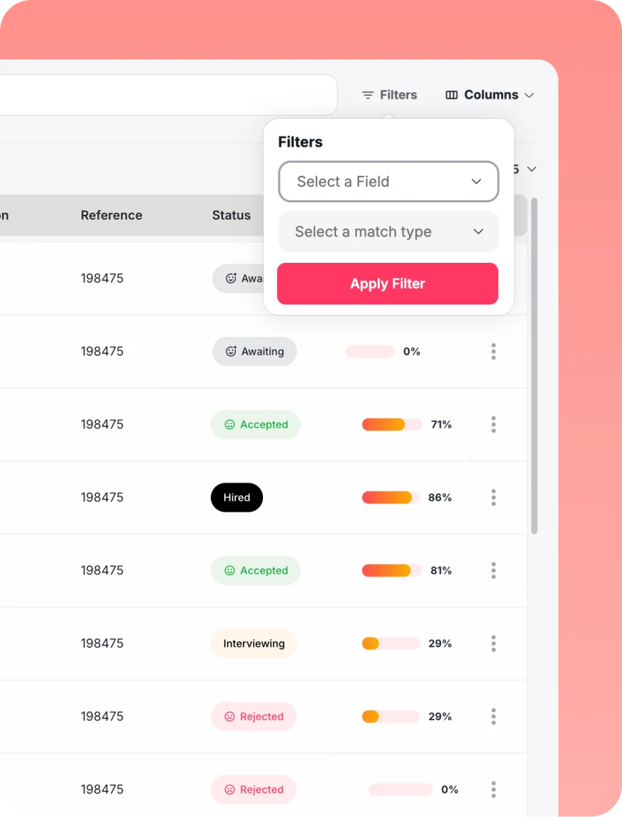 Automatically rank applicants against custom criteria - so hiring teams spend their time with the people most worth seeing, not working through every submission manually.