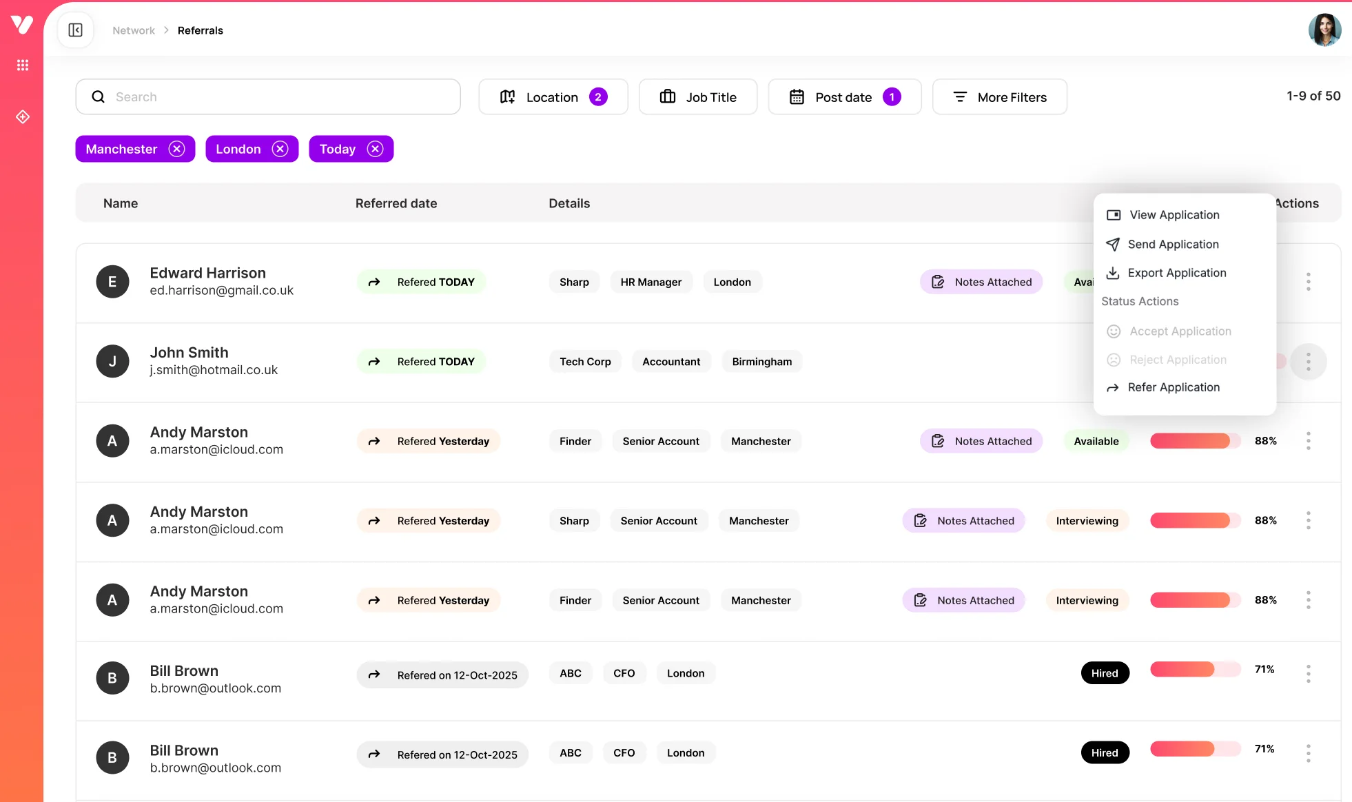 Manage every candidate from application to decision - pipeline status, communications, notes, and documents, all in one place. Integrates with your existing ATS or CRM.