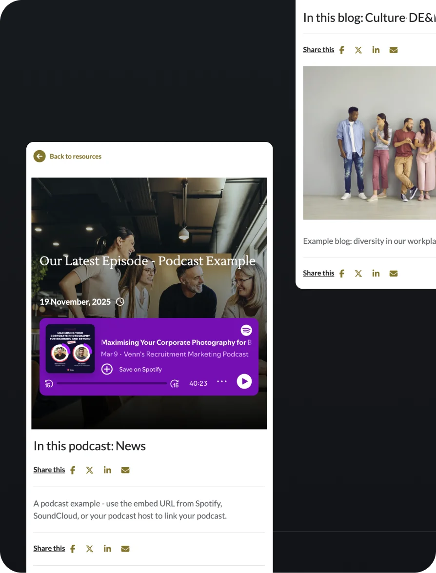 Growth-stage companies have a story worth telling. The challenge is telling it consistently, at pace, and in a way that reaches the right people. Venn gives scaling businesses the platform to build a hiring website that reflects who they are - and keeps working as they evolve.