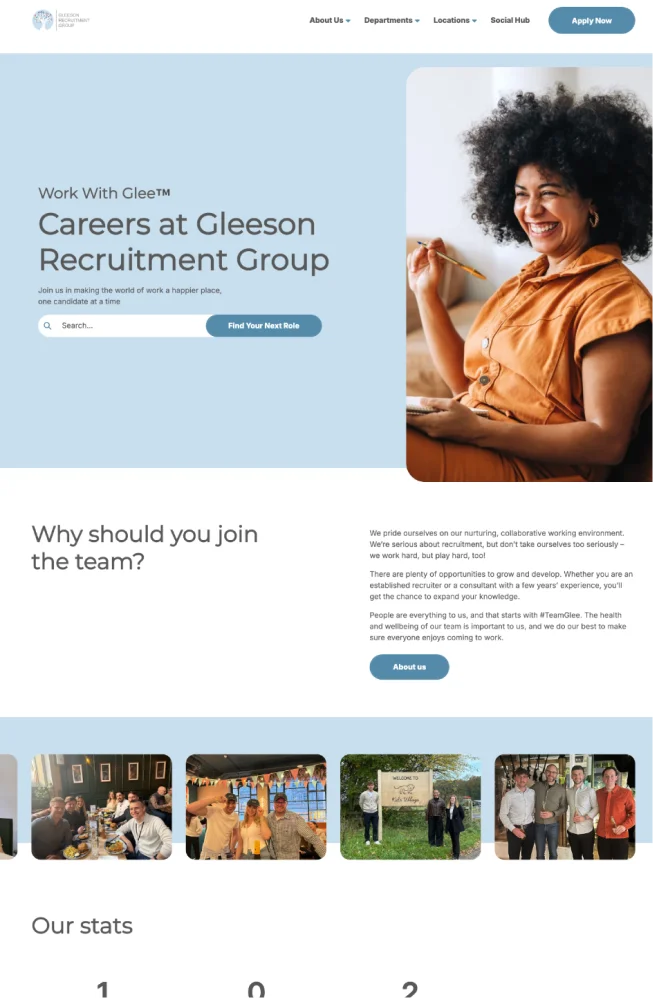 The new careers platform provides a significantly enhanced candidate journey, helping Gleeson better showcase opportunities and attract high-quality applicants. Meanwhile, the executive search and sister brand websites were crafted to elevate their respective propositions, ensuring clarity, credibility, and impact across the whole group.