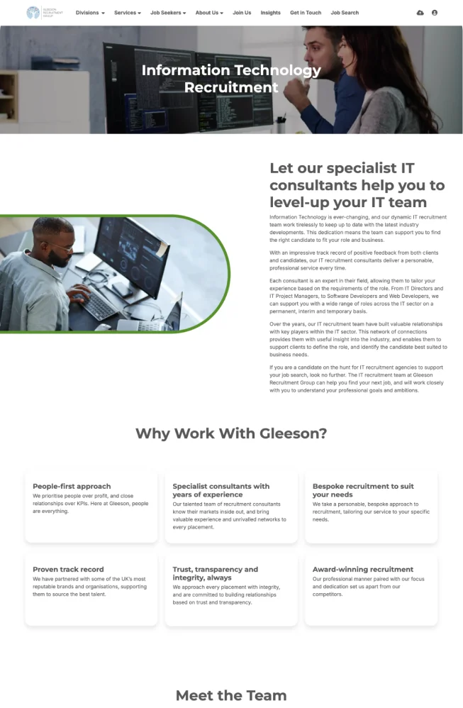 Trust within recruitment is often lacking. Gleeson was founded to change that - to build an environment where people come before profit, and close relationships matter more than KPIs. But a values-led business needs a values-led presence. Across multiple brands and audiences, their digital footprint had to work as hard as they do - earning trust before a single conversation takes place.