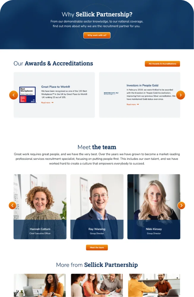 Not only have the microsites helped Sellick showcase priority roles, they've also actively helped them win new business, turning their website from a digital presence into a business development tool — and a platform that continues to deliver value long after launch.